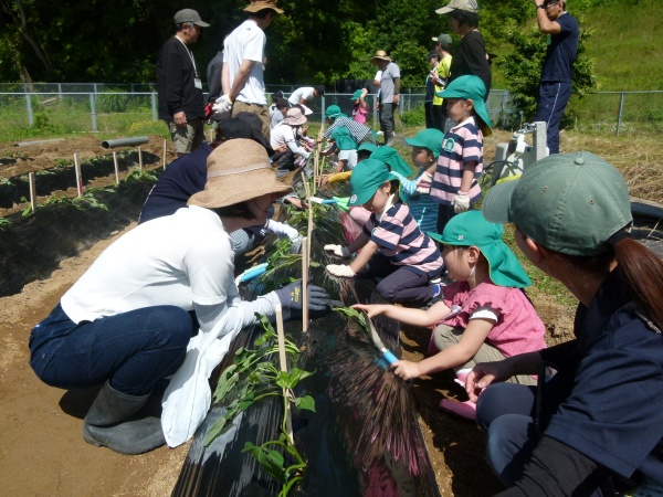 さて,6月5日,爽やかな初夏の風を受けながら,大学の農場の一角をお借りし,本学,技術教育研究ユニット平尾教授のご指導のもと,親子で苗を植えました。