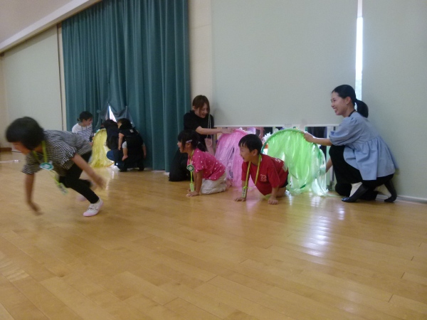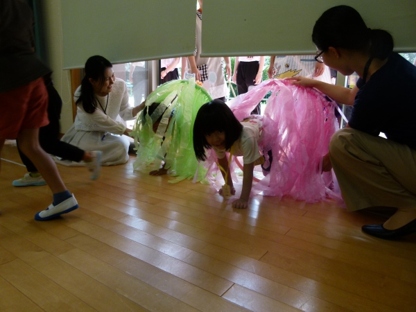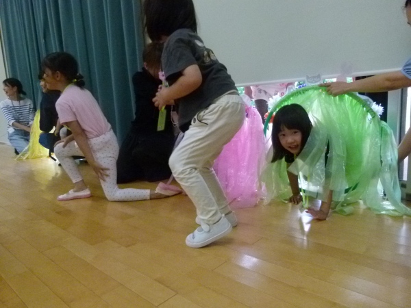 ①フープをくぐって,絵本の世界へ ようこそ!